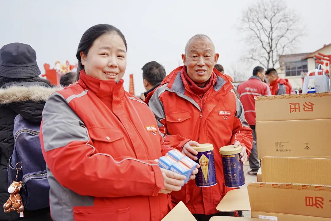 1月29日,农历腊月十一,宿迁光明村2026年京东“我给老家送年货”现场,京东快递老哥李继柏和女儿李青一起为乡亲们分发包裹。送完光明村最后一单年货,他就将告别坚守17年的快递岗位,迎来退休生活。